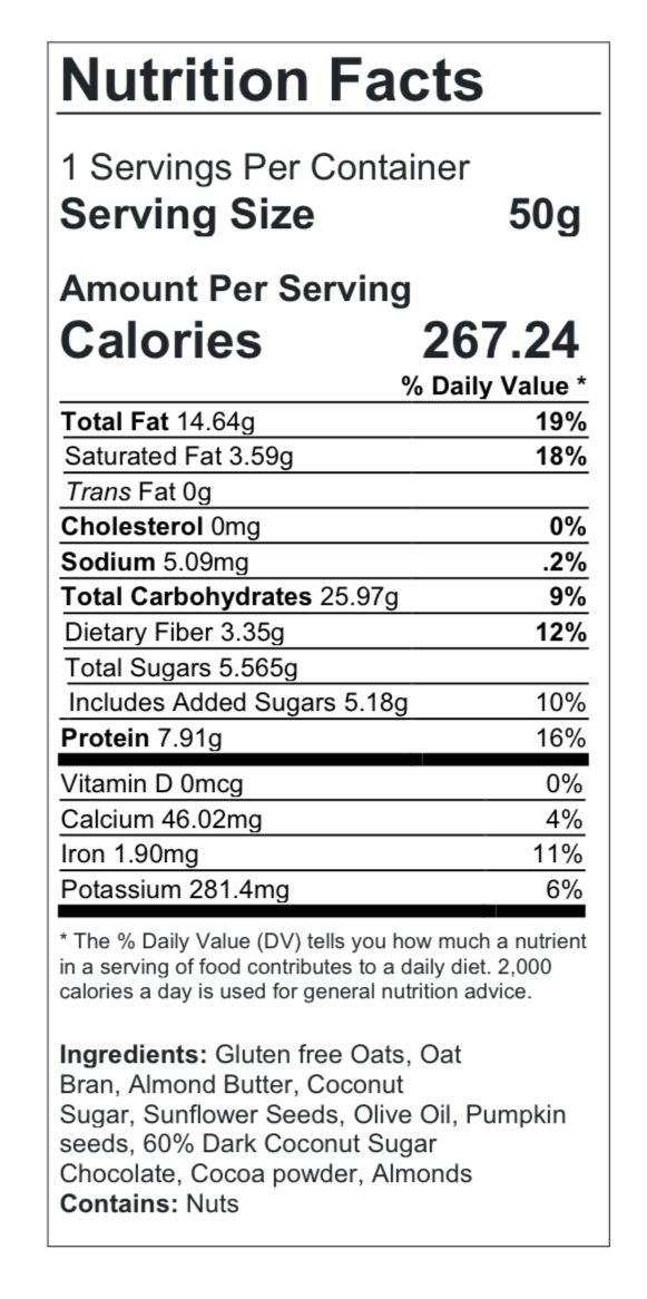 Made with whole grains and vegan dark chocolate, it is packed with antioxidants and high in fiber.