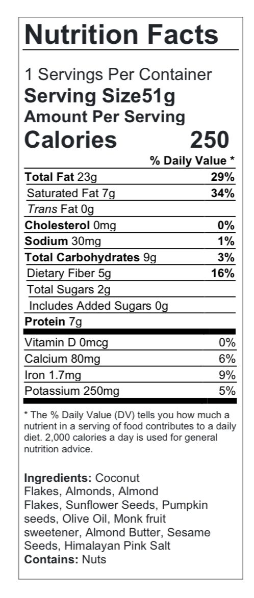 This bar contains hearth healthy nuts, our keto granola is free of sugar. It is diabetic friendly and is a high source of protein and fiber. If you are on Keto diet this is your go to option granola snack (made with Monk-fruit Sweetener).